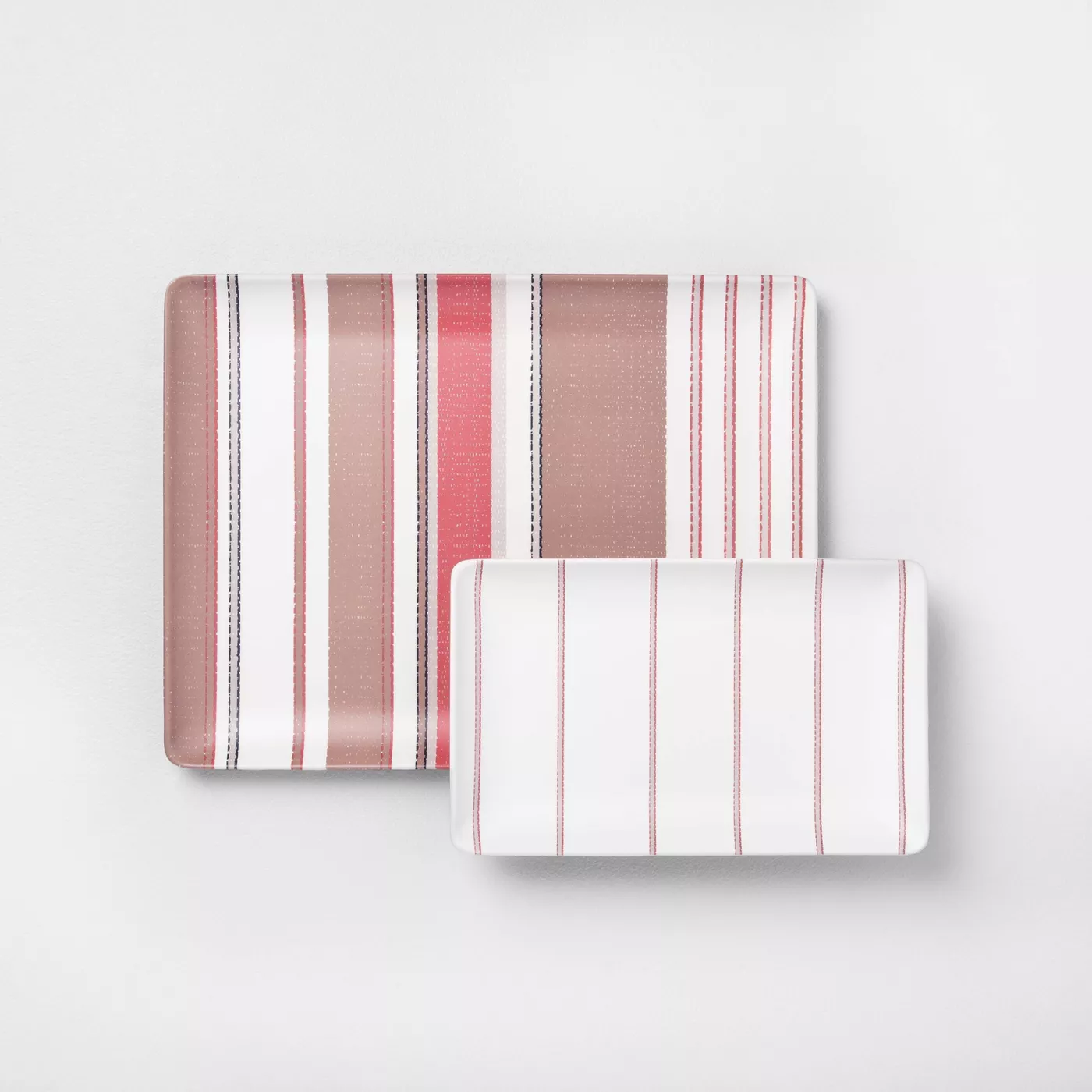 Planning on entertaining this summer? Serve your delicious homemade treats with these fabulous multi-stripe serve trays. We love the casual and contemporary flair. These trays bring to your home decor. Plus, they're great for everyday use, and their melamine construction makes cleaning a breeze.