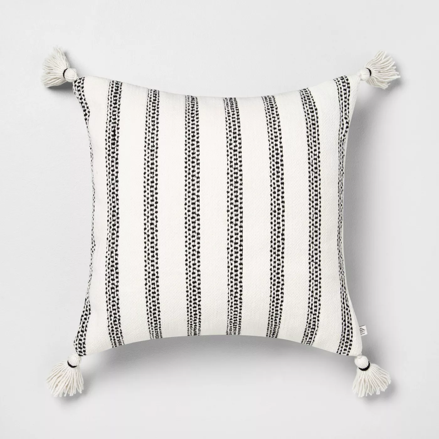 One of the quickest ways to update your farmhouse living room decor is by switching your sofa pillows. We love this striped pillow that can work both indoors or outdoors. Its classic woven design with tassels perfectly complements your modern farmhouse decor.