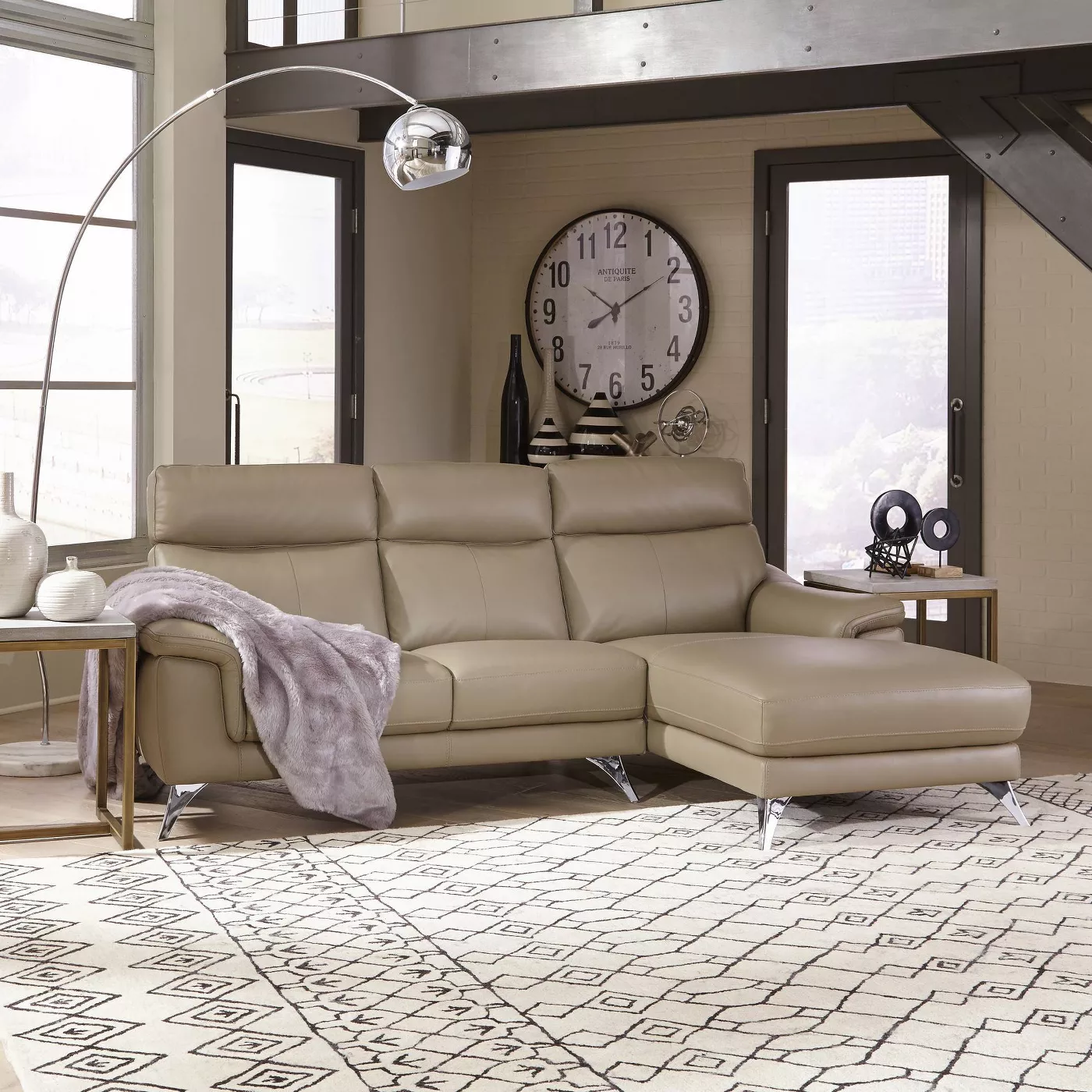 A modern living room is trendy but also comfortable. Wide sofas and sectionals are popular for lounging. A couple of glass and metal accents elevate your room within that traditional modern style look and feel.