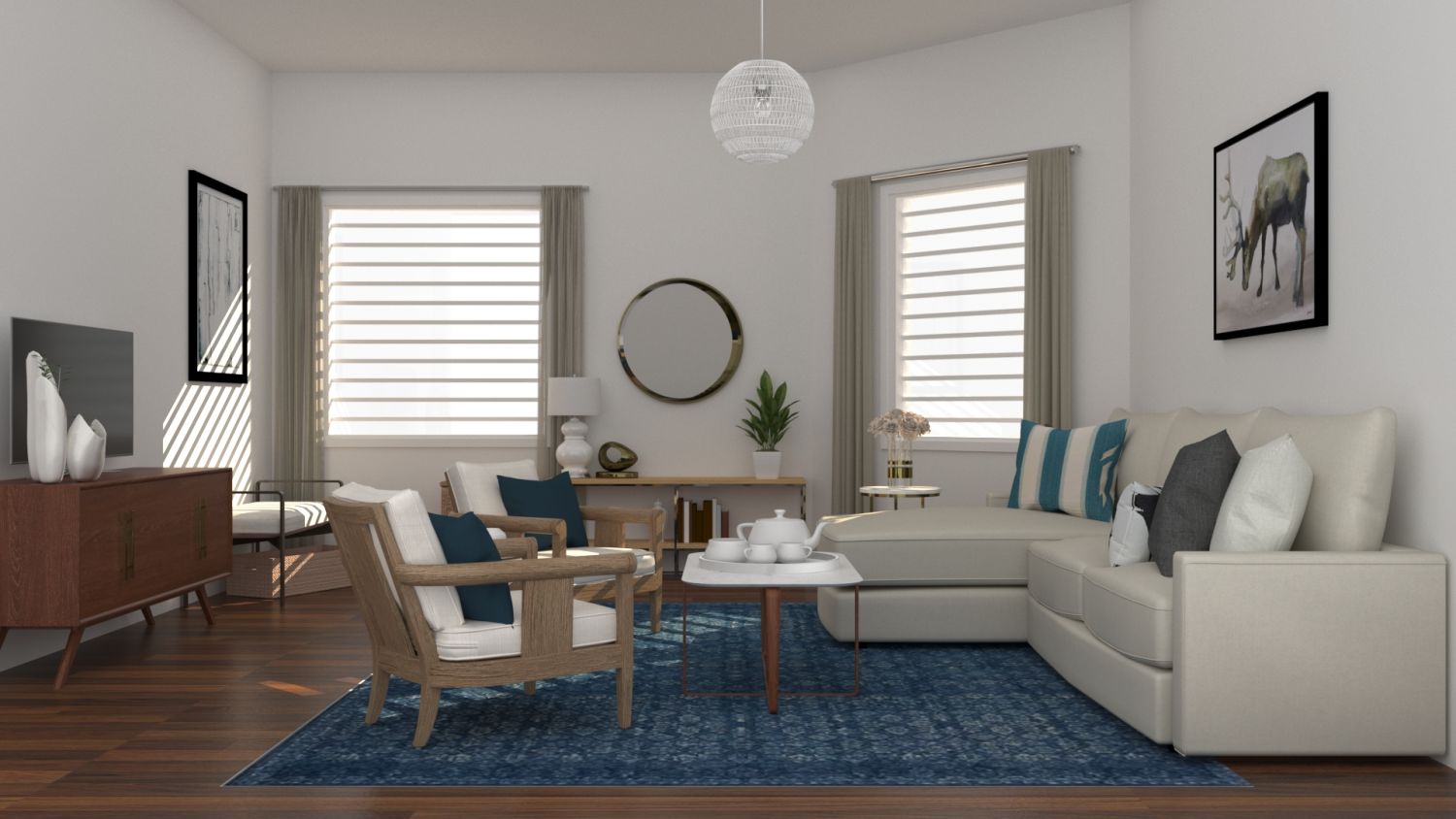 - Pick mid-tones for rugs and large furniture pieces, even if they have a patterned design.