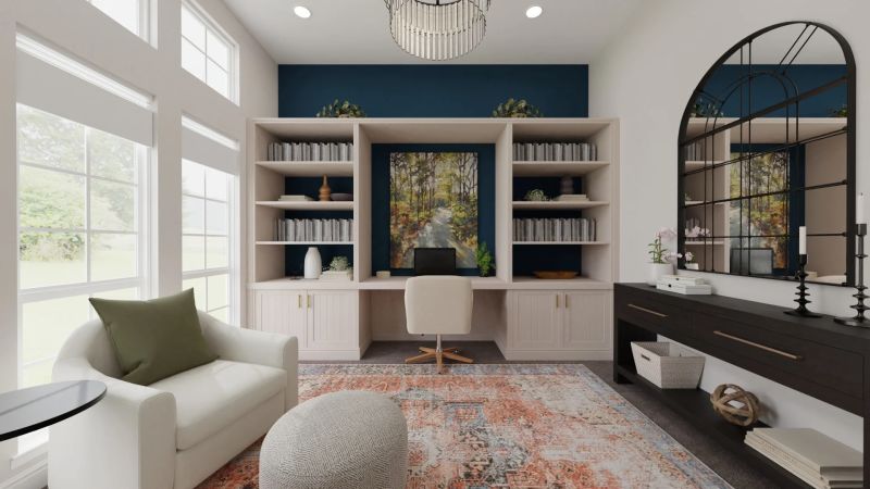 Think floating built-in shelves, under-desk drawers, or built-in wall units that hide files, tech cords, and supplies. The result? A clean, tailored look that feels intentional and elevated like your home office was designed by a pro (because, well, it was).