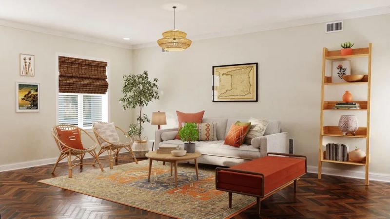 Wood Accents: Mid-Century Modern Bedroom with Rustic Flair